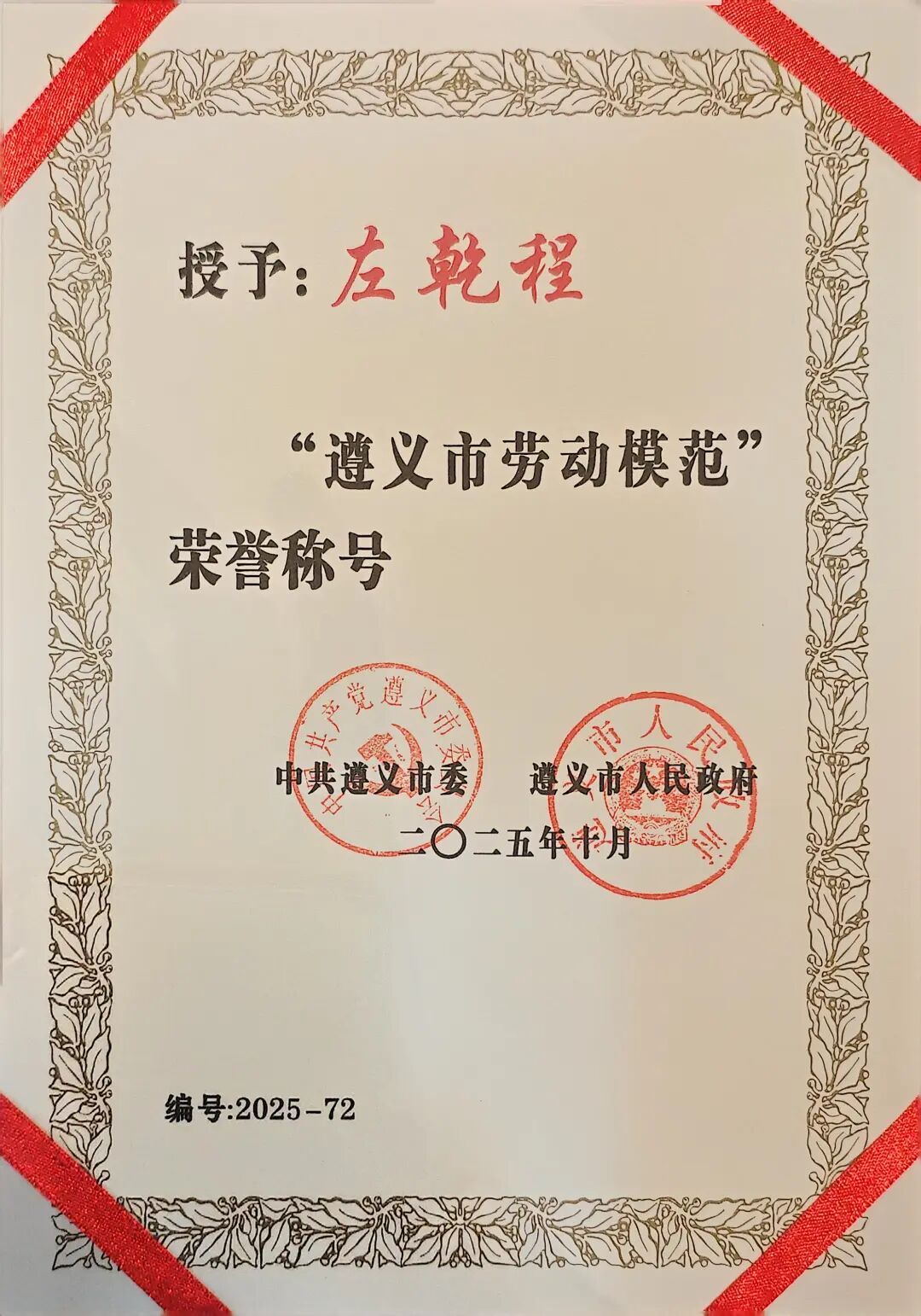 行业骄傲!酣客君丰左乾程获遵义劳模称号